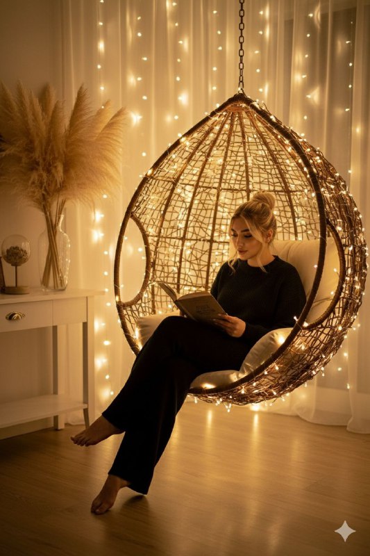 Home » Home Digitals » صندلی آویزی حصیری با چراغهایگرم A single…