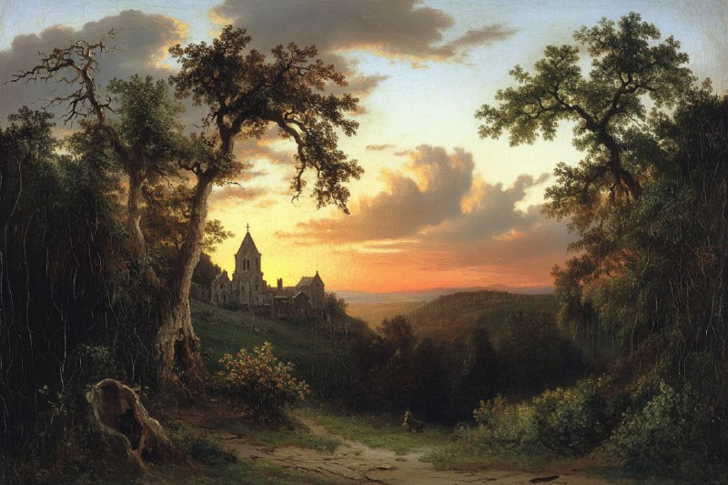 Home » Home Digitals » 1800s painting of english countryside with church…