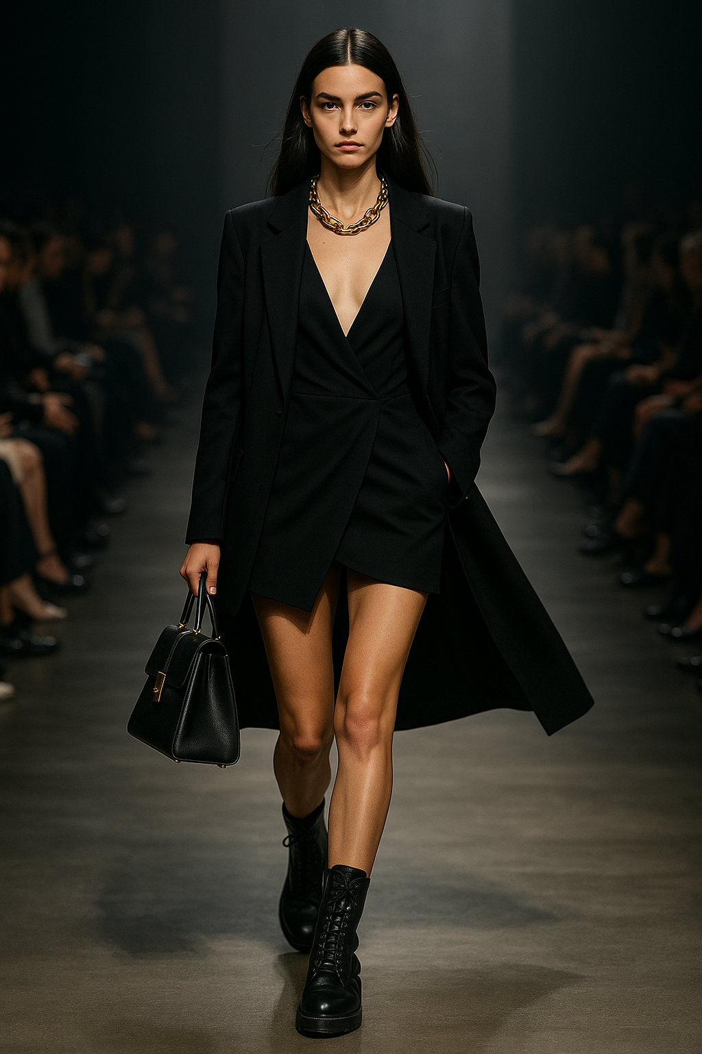 برچسب: accessorized, ai, aivisionspace, art, asymmetrical, atmosphere., audience, background, black, blazer, blurred, bold, boots., capturing, casting, catwalk., chain, chic, chunky, cinematic, combat, confident, creating, dall-e, dark, deep, details, dimly, down, dramatic, dress, either, emphasis, ensemble:, expression., fabric, fashion, featuring, fierce, floor, flows, focused, gold, Hair, handbag, hardware, hemline, high, hyper, lace, lighting, long, loose, makeup, metallic, Midjourney, mini, minimal, model, mood., natural, neck, necklace, outfit, paired, prompt, realistic, runway, scene, seated, shadows, side, skirt, sleek, soft, stable diffusion, striking, structured, style, tall, texture, that, walking, walks., wears, with, worn, wrap, پرامپت, هوش مصنوعی
