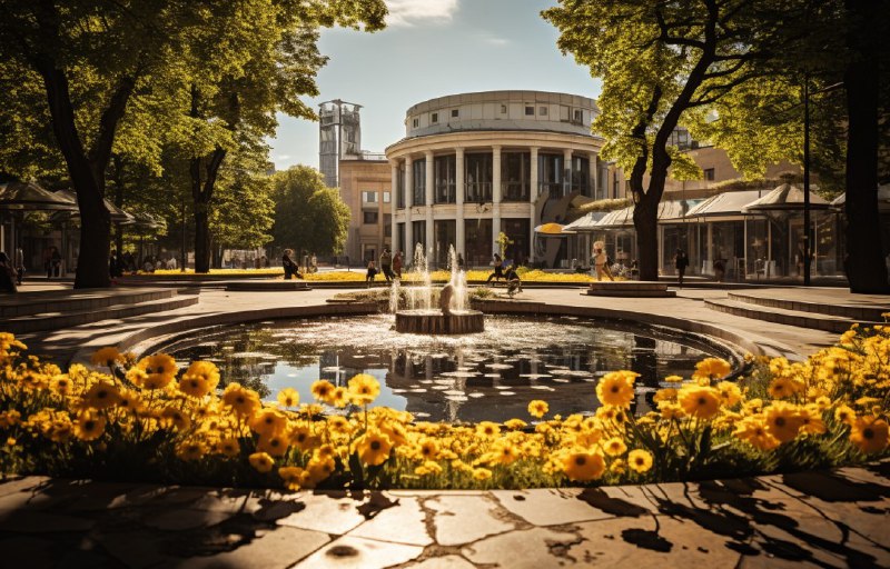Home » Home Digitals » City people fountain flower bed houses architectureб…