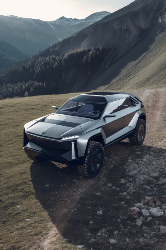 Cybertruck concepts V5Prompt – slightly overhead front…