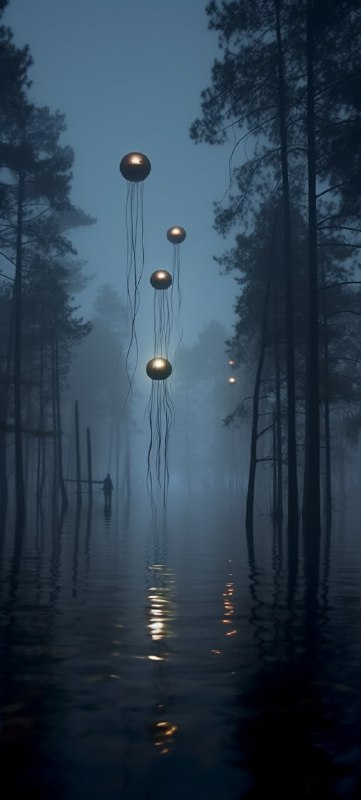 Home » Home Digitals » Flying jellyfish over a lake in a…