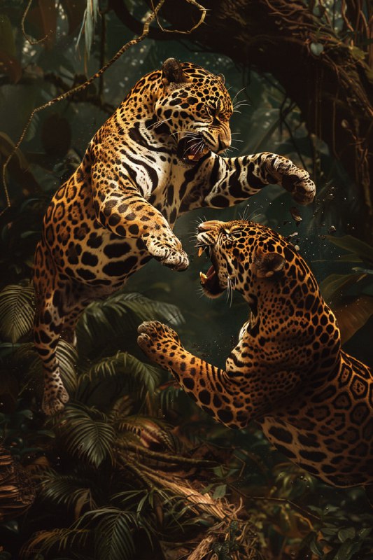 Home » Home Digitals » full body two jaguars battling jungle scene…