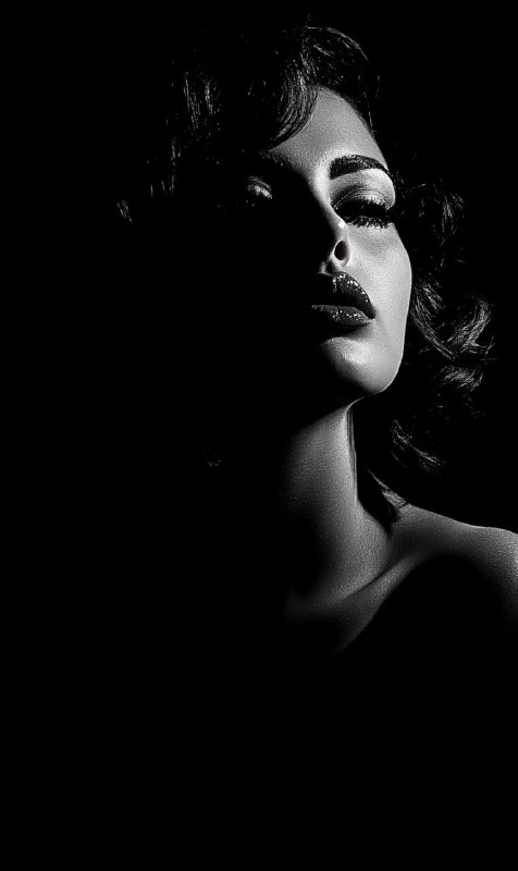 photograph of a femme fatale solid black…
