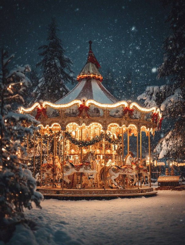 Home » Home Digitals » PromptMagical Christmas carousel in a snowy winter…
