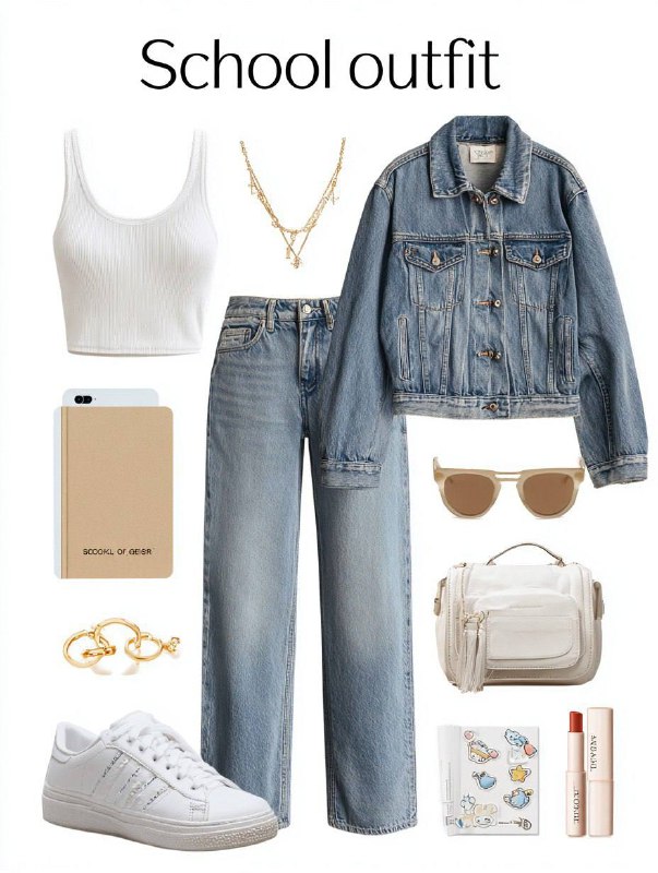 Home » Home Digitals » Prompt:”School outfit” text title school outfit flat…
